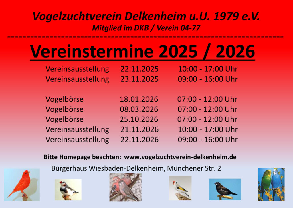 Herzlich Willkommen auf der Internetseite des Vogelzuchtverein Delkenheim u. U. 1979 e.V.