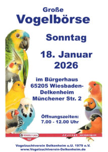 Am 22. und 23. November 2025 (Samstag und Sonntag) ist es wieder soweit. Im Bürgerhaus Wiesbaden-Delkenheim präsentiert der ortsansässige Vogelzuchtverein bei der diesjährigen Ausstellung wieder viele Vögel aus zahlreichen unterschiedlichen Arten.
